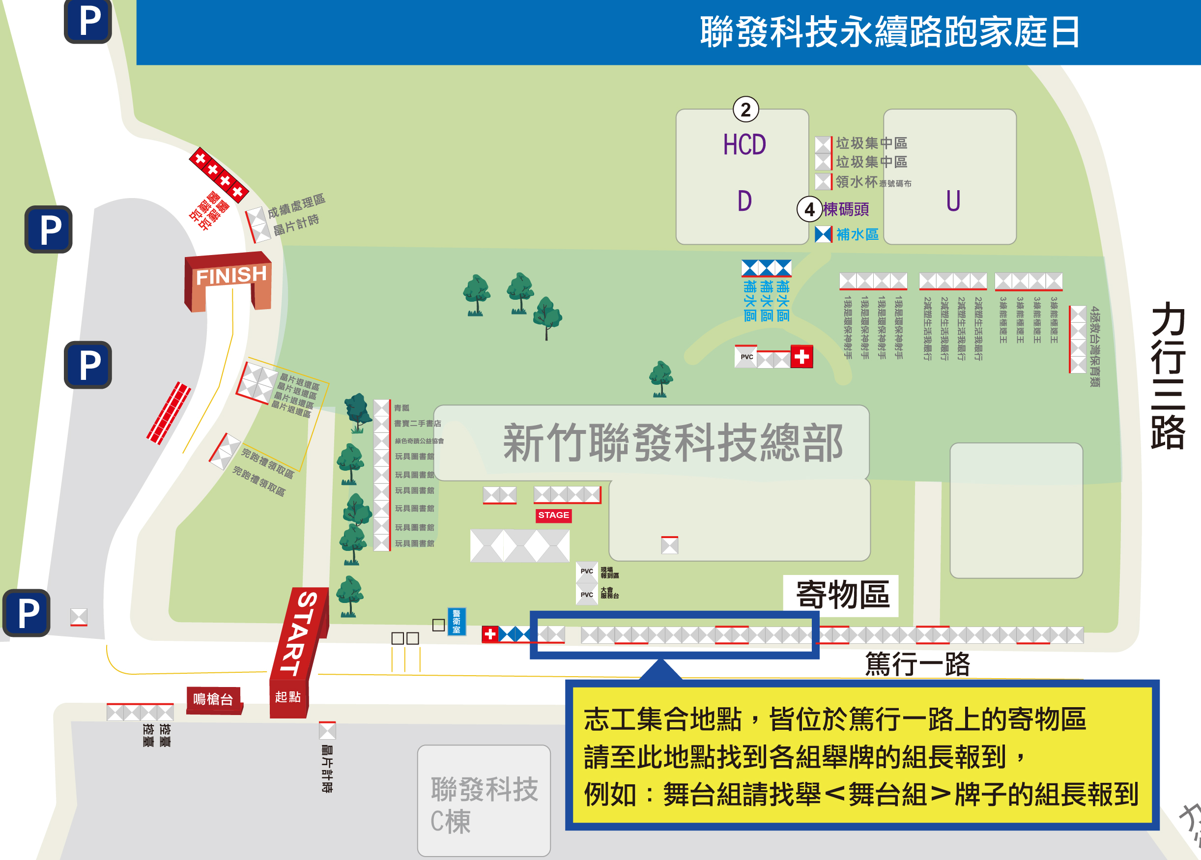 6、報到地點:參考下圖志工報到地點,找到各組舉牌的組長報到