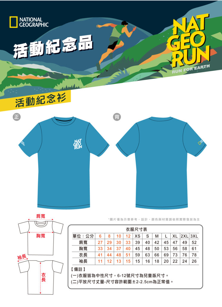 六、活動紀念衫尺寸請參考下圖: